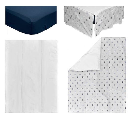 Blue and White Anchor - 5-piece Baby Bedding (Nursing Pillow Included)