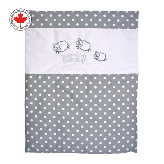 Attachant bébé éléphant à pois gris (literie bébé 5 pièces #516, coussin d'allaitement inclus)