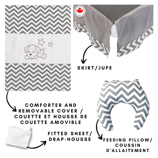 Literie Zigzag Chevron Gris et Blanc (Literie Bébé 4 Pièces, #300)