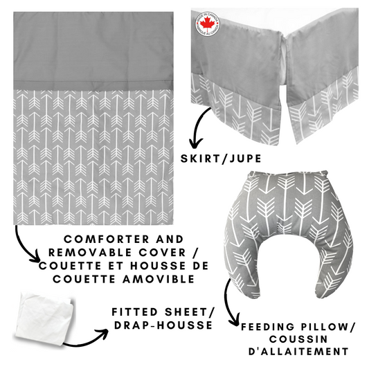 Literie de bébé 5 pièces minimaliste avec des flèches volantes (coussin d'allaitement inclus)